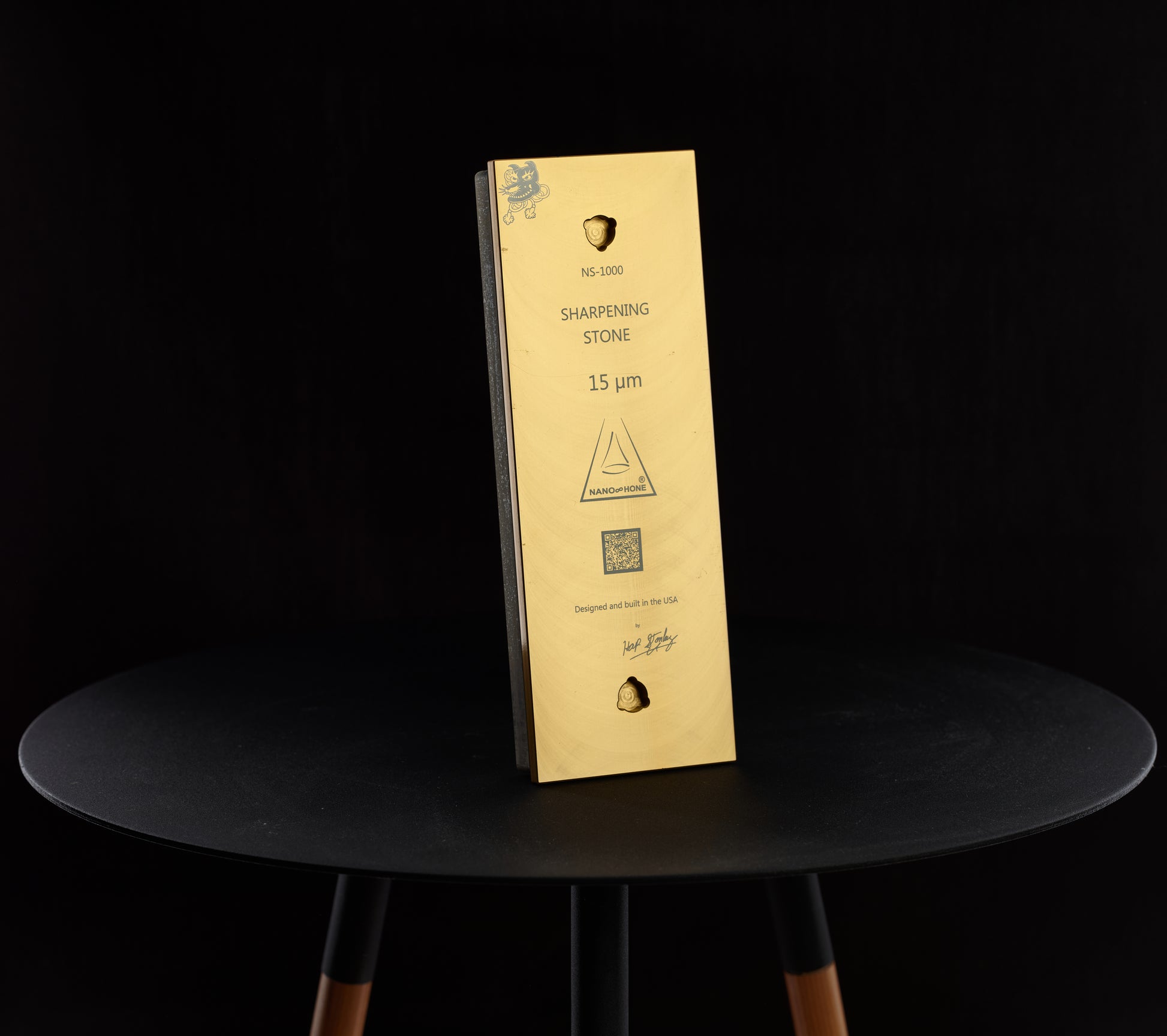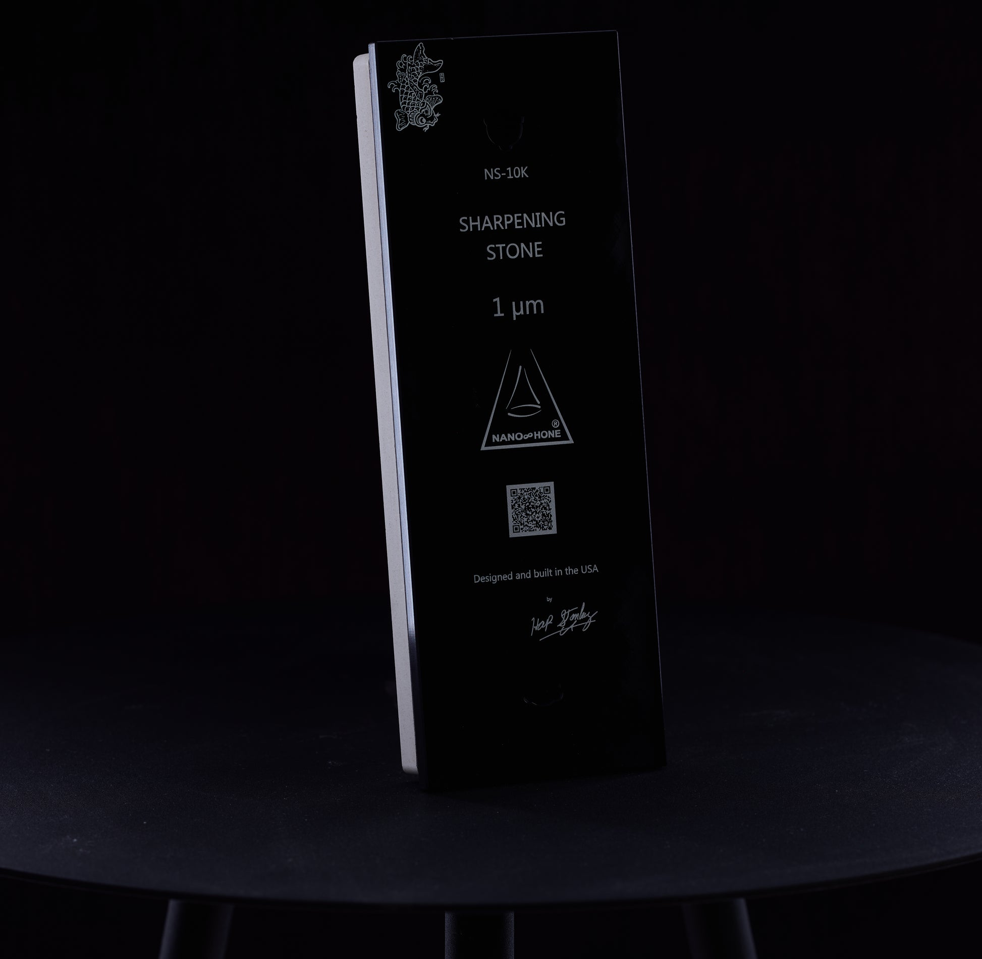 -There are many choices for customers looking for a 1000 grit sharpening stone. Why should you buy this stone? Because its fabulous medium grit abrasive that is uniform from day one to the last thin layer. Like all Nano Hone stones its micron size accurate. And, it's really fun to use. Hap has worked on this stone more than any other abrasive we offer and it shows in every detail.