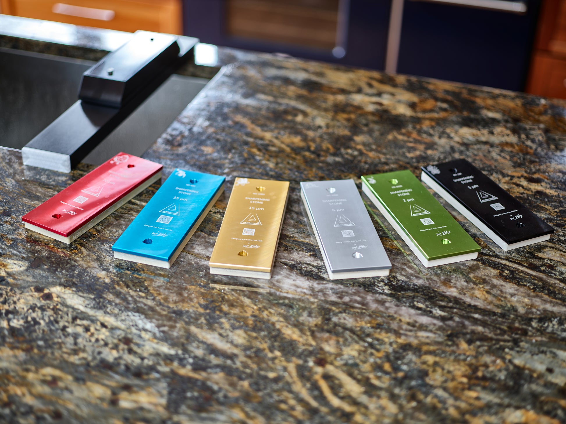 -A great touch up tool for stainless steel knives. Our 35 micron sharpening stone is resilient and still has bite and feel. Woodworkers' favorite.