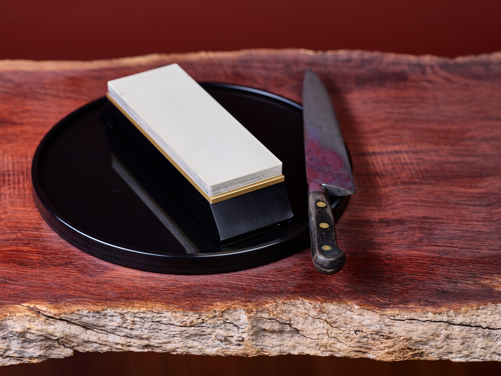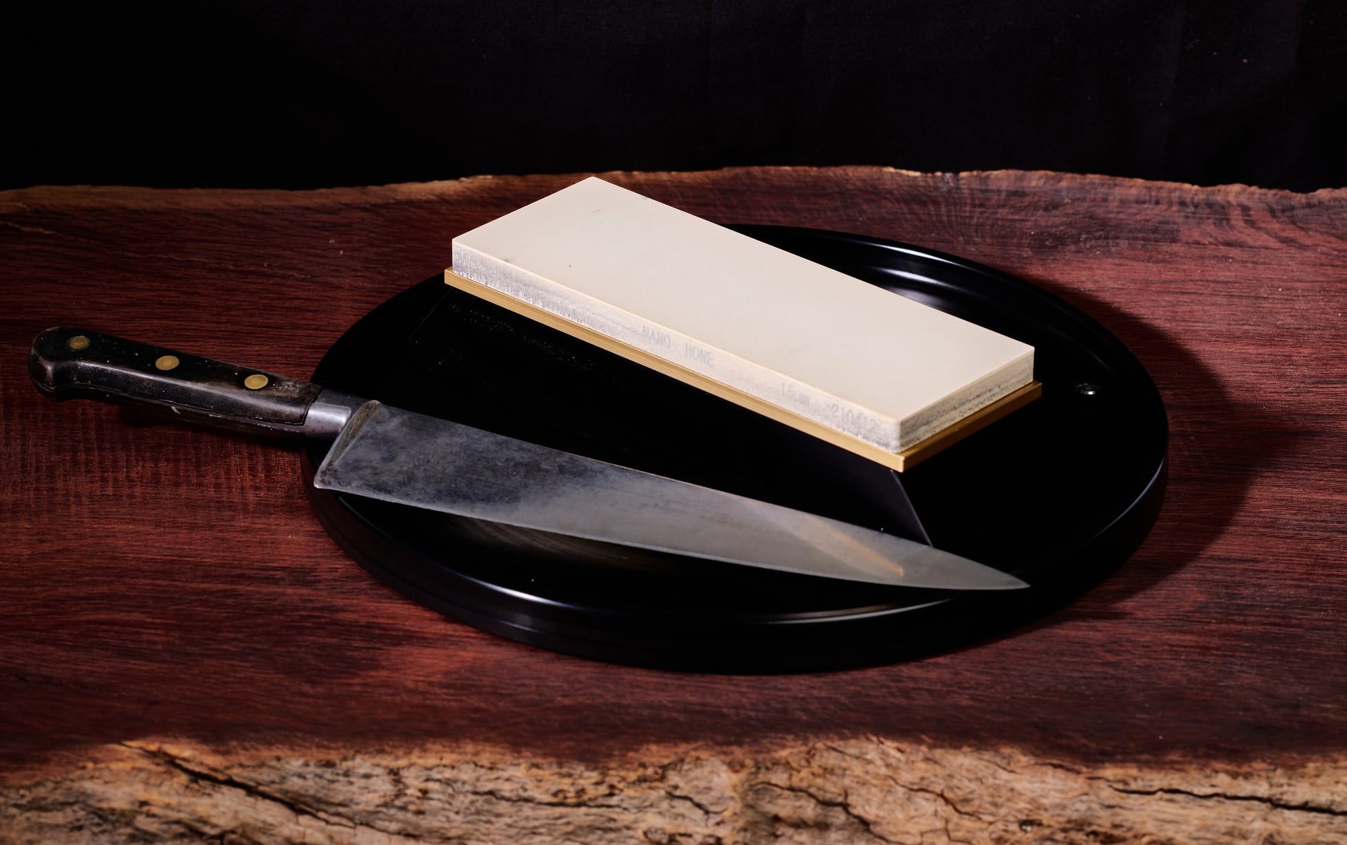 -This stone puts on a razor sharp edge. Many chefs will stop right here. The ultimate serviceable edge.