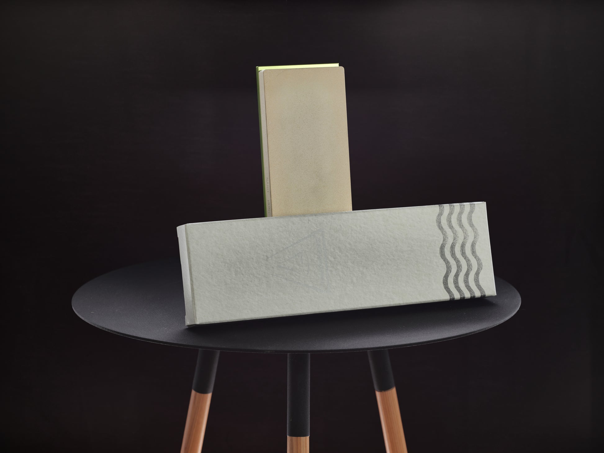 These stones are forged of non-porous ceramics and are a great balance of finish and speed of cut. Feels smooth with a subtle bite.