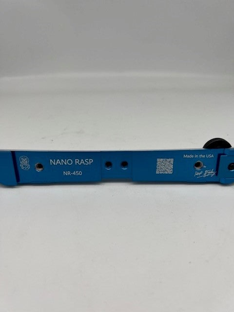 Hap's new Nano Rasp is a heavy duty handle for thinning and sharpening. Our Nano Hone ceramic and diamond resin abrasives lock into the bottom of the bar very securely. Abrasives can be changed in three or four seconds, simply by loosening the main screw 1/2 turns and sliding the abrasives out to the side. Not only Nano Hone abrasives, but any 1x6 abrasives for standard sharpening jigs will fit in the Nano Rasp. One of the key design features of this tool is the ability of the user to see the corners of the abrasives while working with the rasp. Hap worked through many iterations of his design before finally putting it into production.