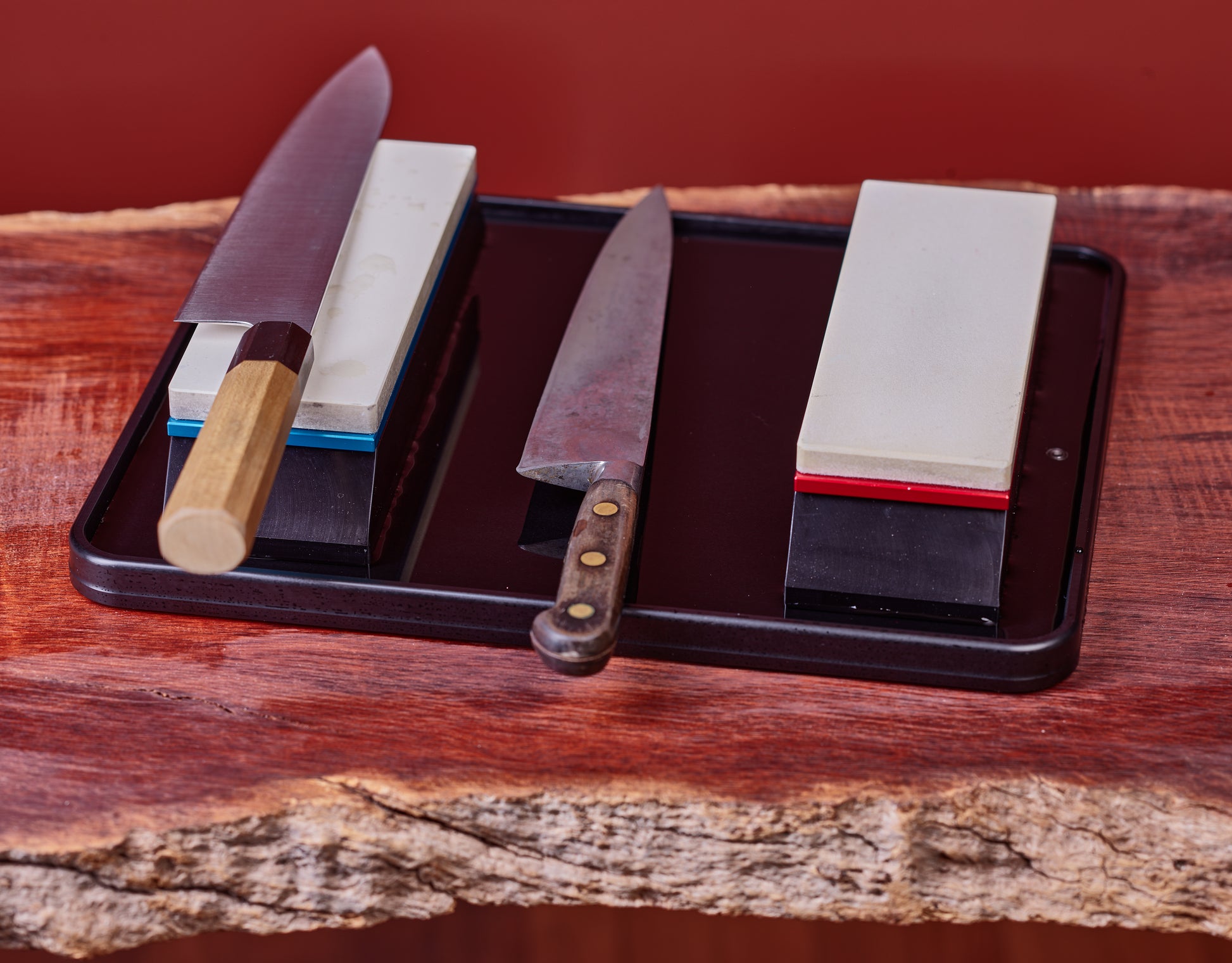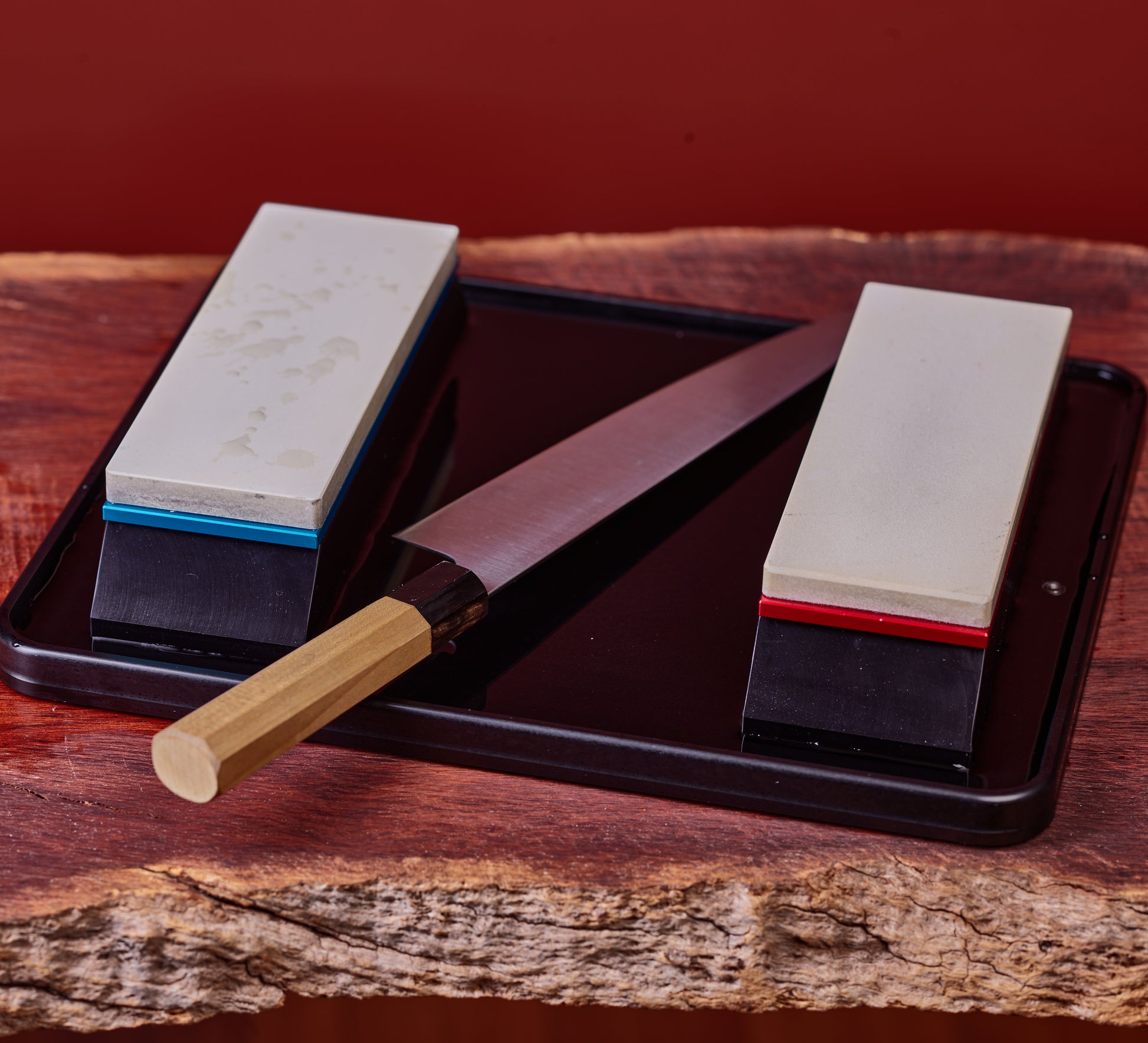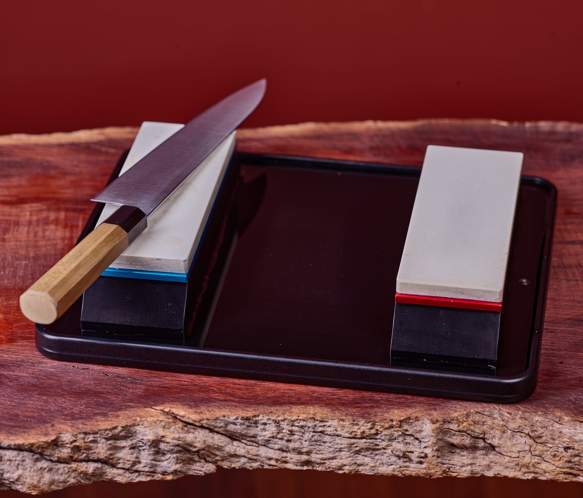 The Terra Package is a complete sharpening system at an attractive price. Compared to the Moon Pond, the included Terra pond and two holders can be used to work with two stones with minimal changeover time.
